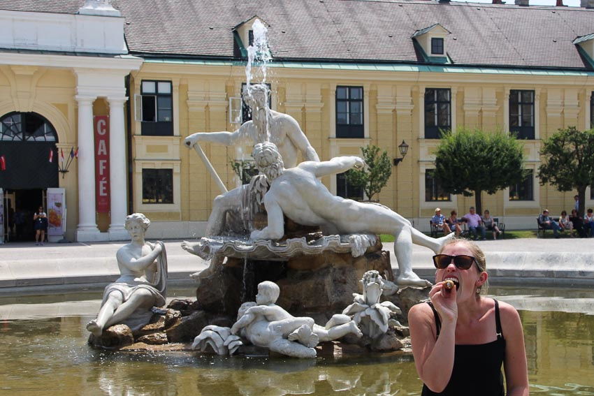 At the top of the hill you can stop for a Kaffe (coffee), Wein (wine) or Nachspeise (desert) at the beautiful Gloriette. Here you will look back at the palace and realise just how gross (big) it really is and see the sights of Vienna’s city behind it.