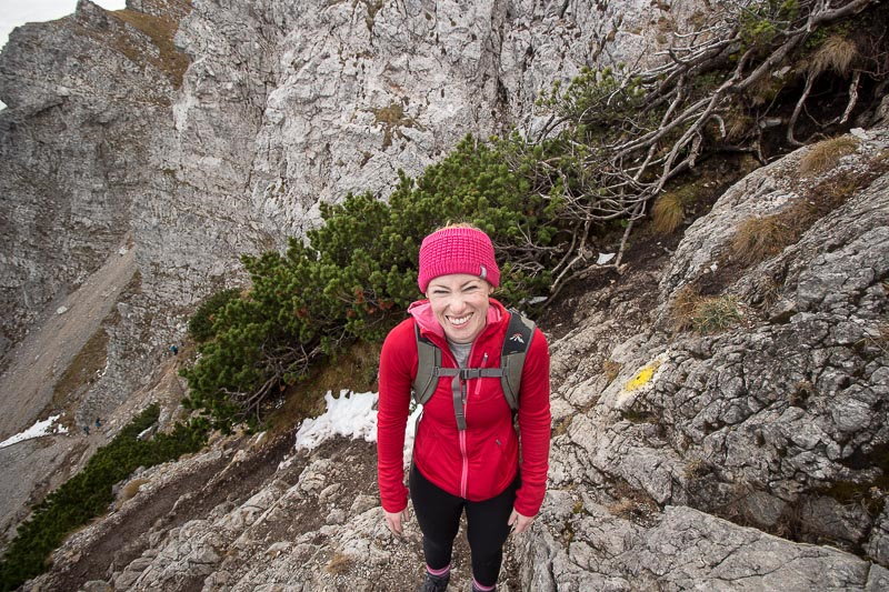 This is the steepest and technically most challenging section. Having said that, you don't need any skills or experience to do this, although some decent shoes will probably make the climb easier. The footing is partially on steep gravel, with possibly some wet, snowy patches in between, depending on the season. You will also have to go through some bouldery parts which may require the use of handholds. There are two traverse sections that can feel a bit dodgy and exposed, especially if there is snow, however those are secured with a handrail.